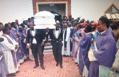 Fr Odukwe conveyed Archbishop Valerian Okeke's condolences to Senator Oduah who he described as a true daughter of Igbo land going by her achievement as Aviation Minister. The Senate President,Dr Olusola Saraki, represented by Senator Dino Melaye who led other senators and House of Representatives members to the funeral laced his remarks with humour and jokes,said the Senate President was pained by the death of Chinedu whose mother,Senator Stella Oduah she described as a reliable and hard working colleague.He pledged that the Senate will donate generously to the newly formed Foundation for the deceased.